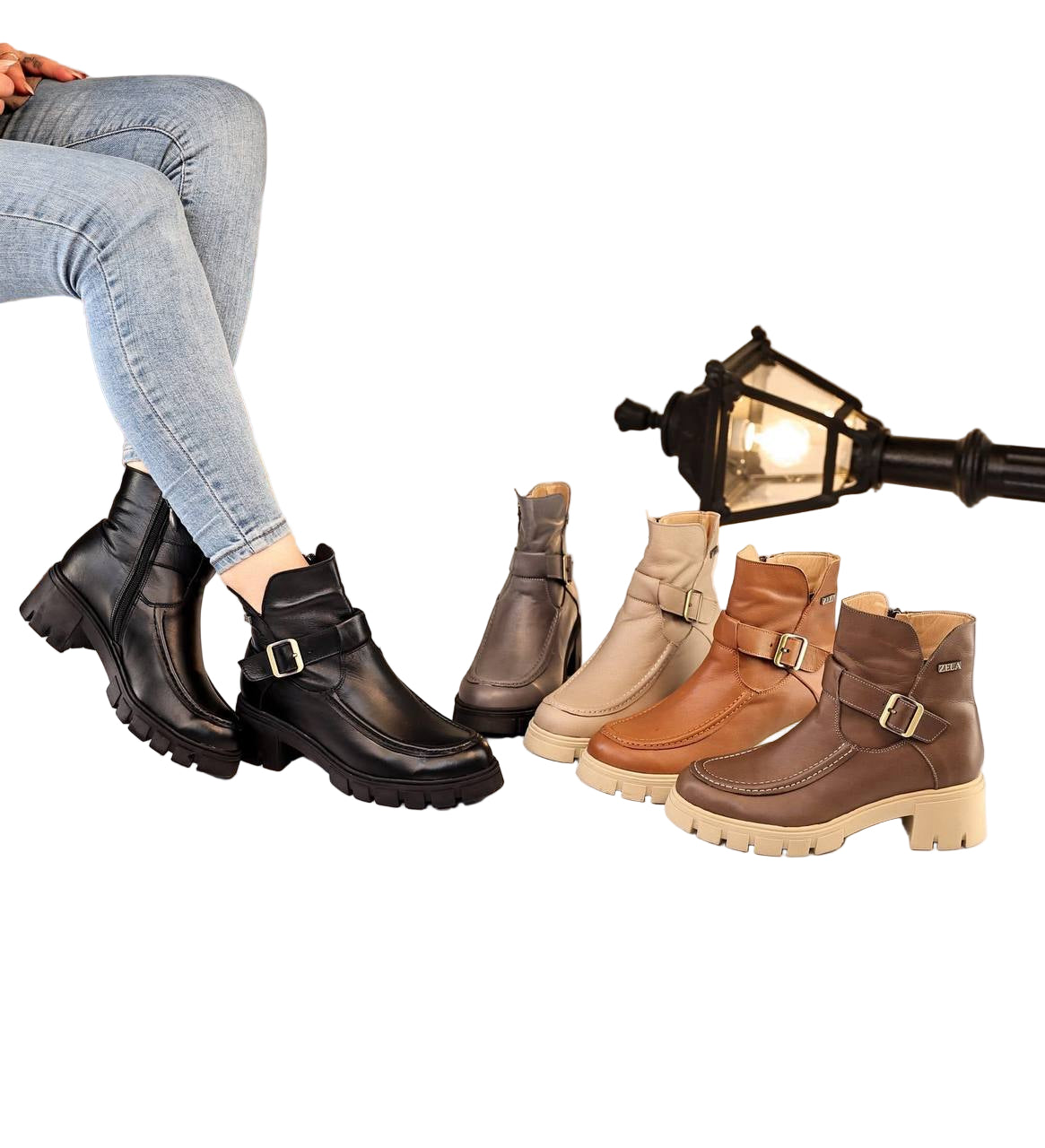 حذاء بوت أنيق للغاية من الجلد الطبيعي والنعل الطبي المريح، بقصّة عصري