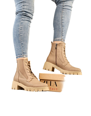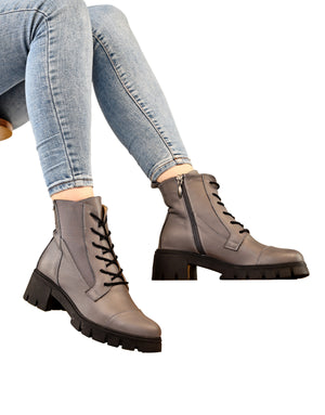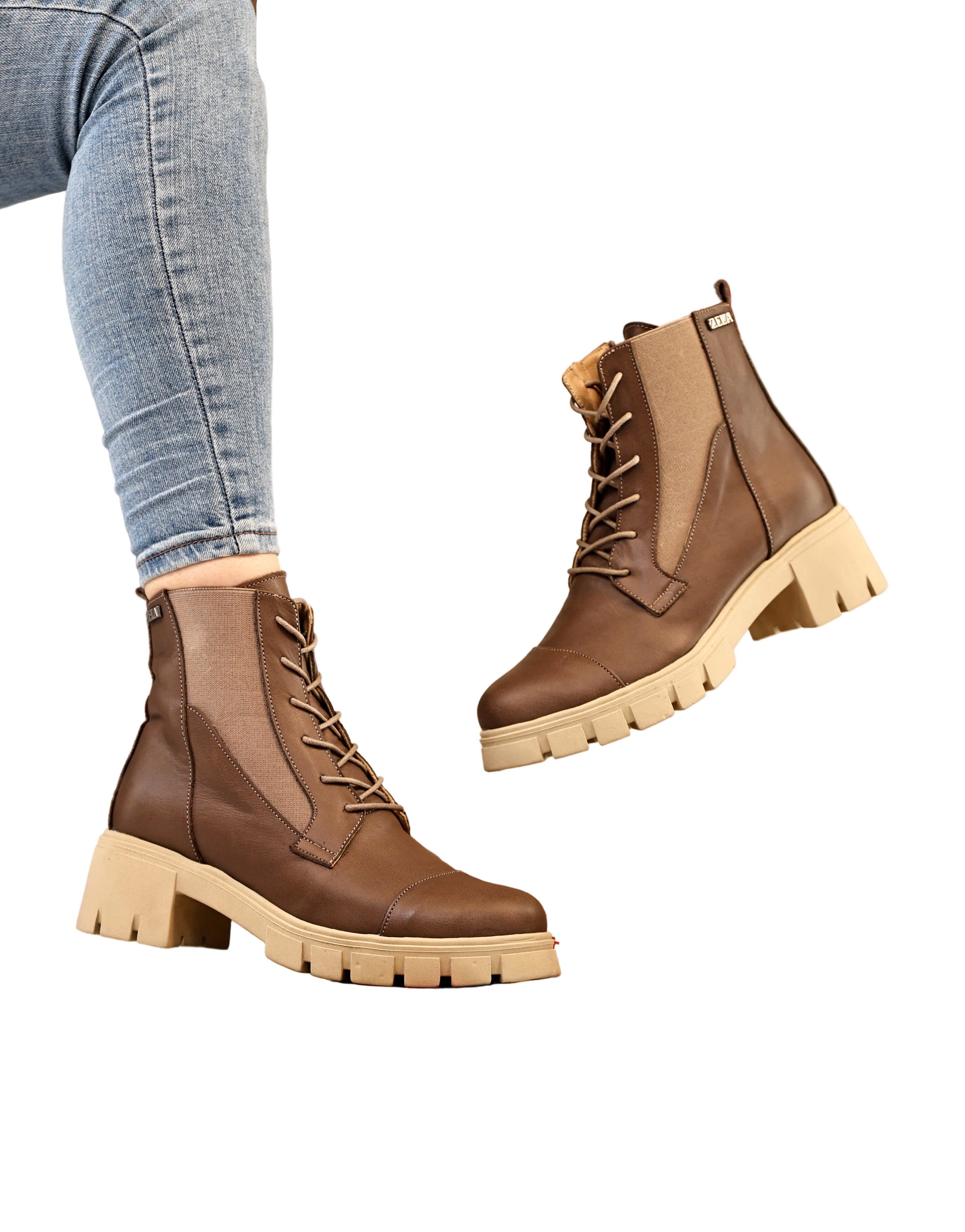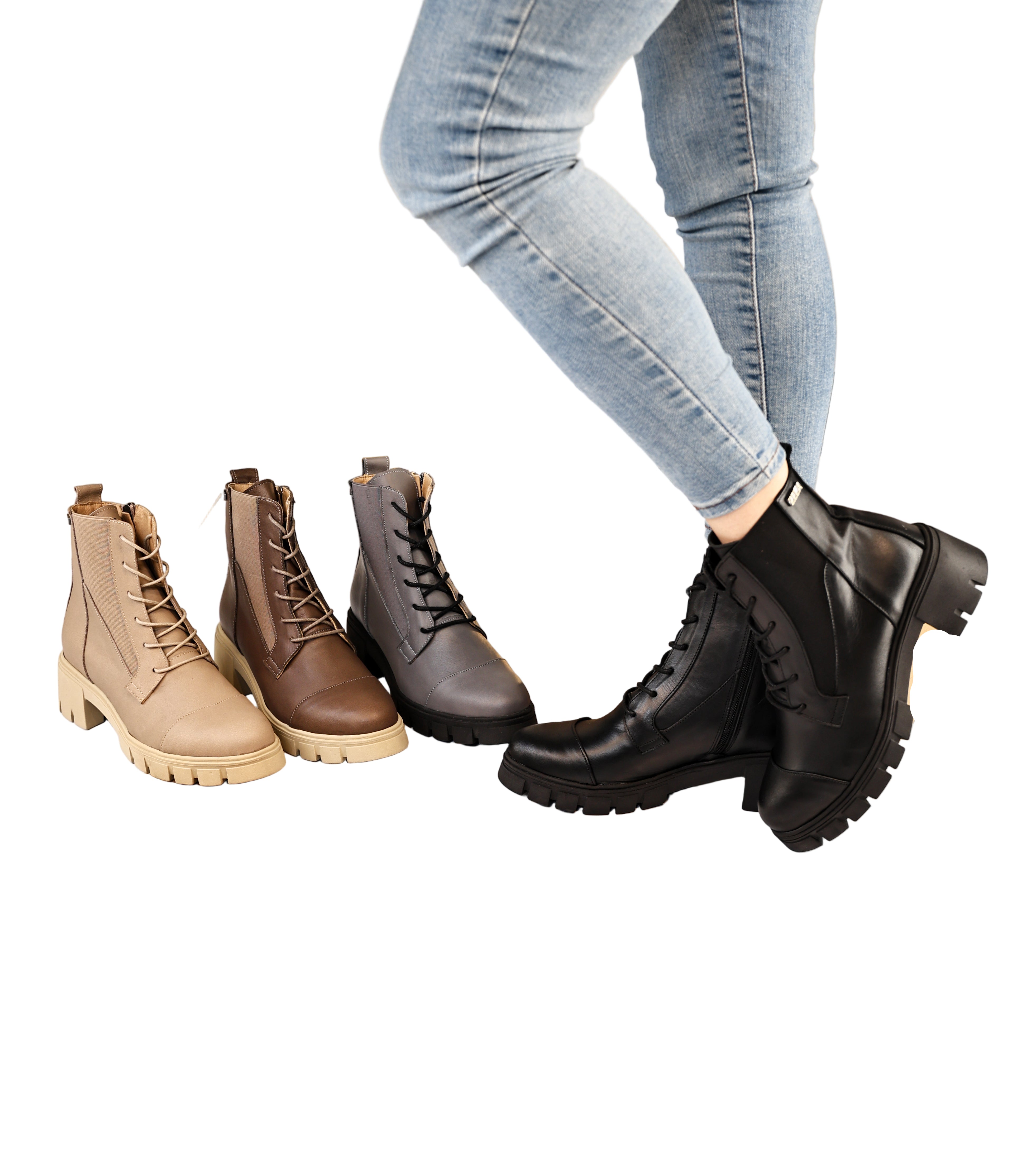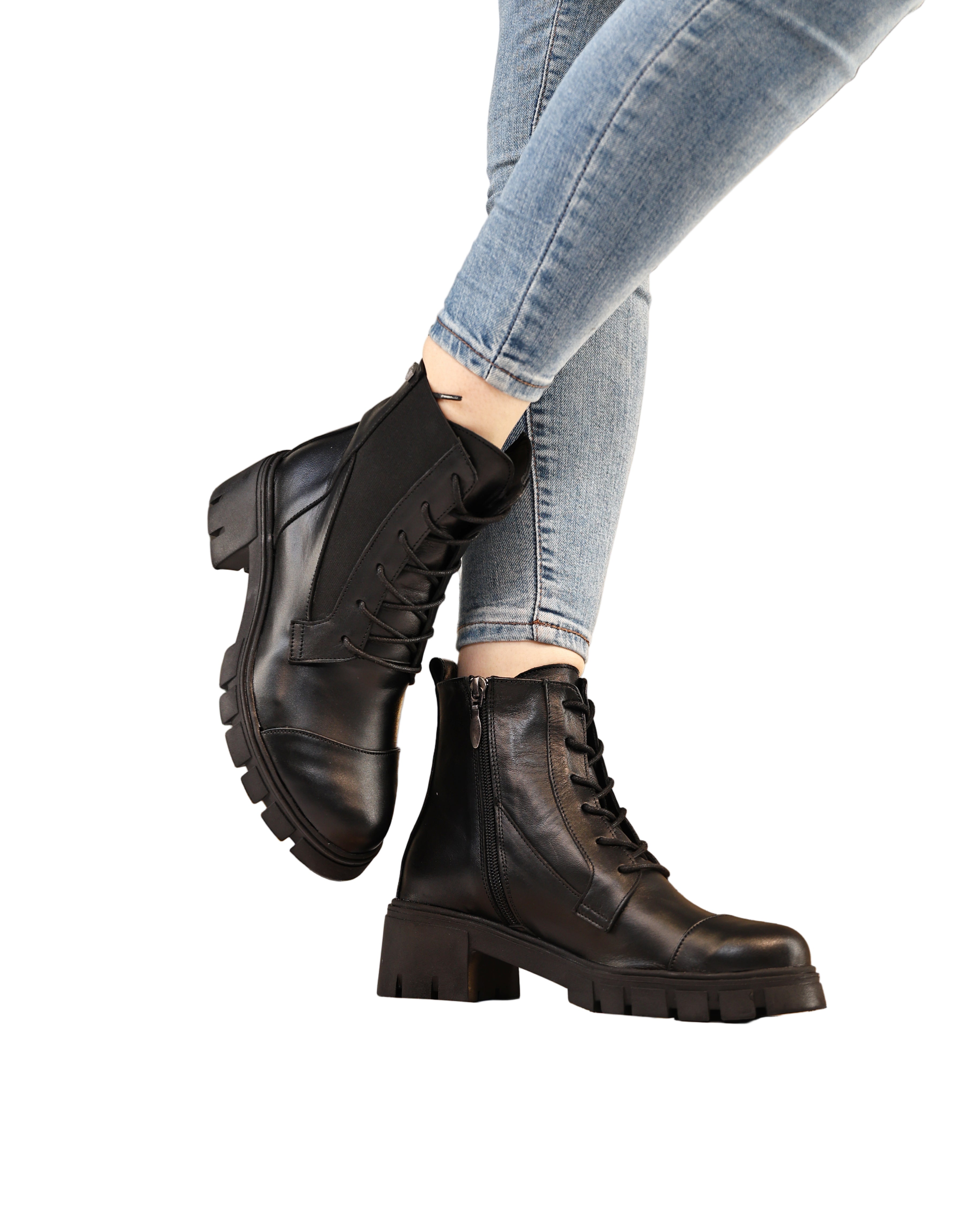 حذاء كلاسيكي مصنوع من جلد ناعم يدوي الصنع، بأربطة تُضفي عليها لمسةً من الجاذبية وسحاب جانبي لإغلاق سريع. تصميم يجمع بين الأناقة والراحة الحقيقية -