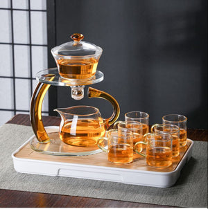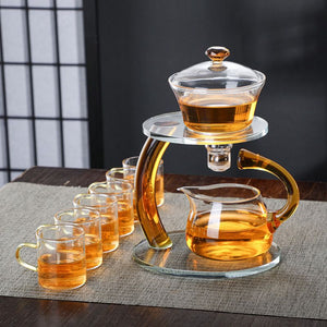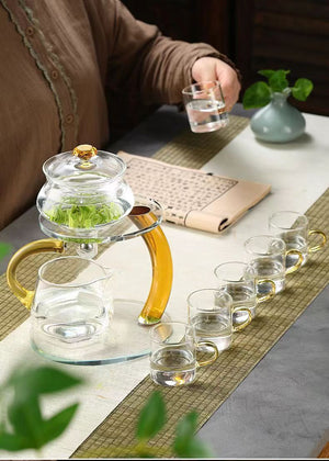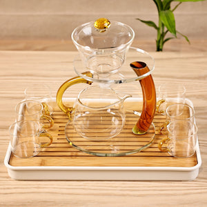 ✨ طقم شاي زجاجي فاخر بمقابض ذهبية ✨