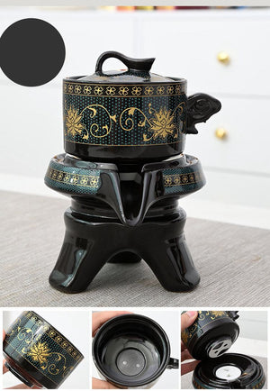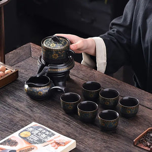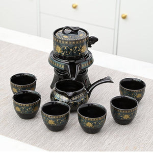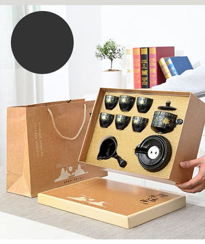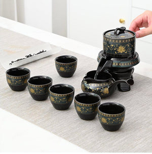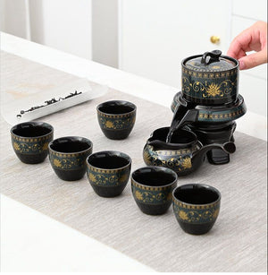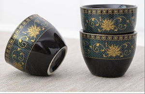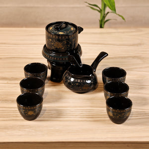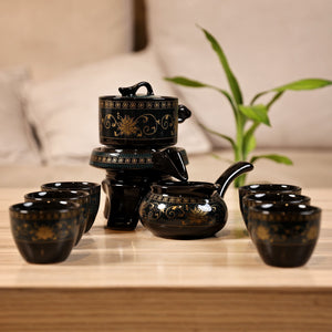 📸✨ طقم شاي فاخر باللون الأسود المزخرف بالذهبي ✨📸