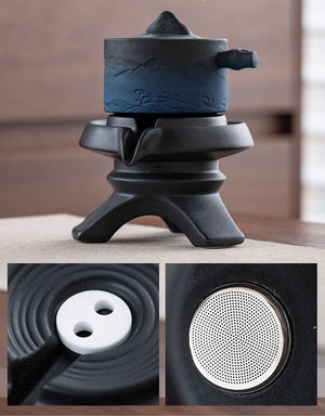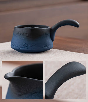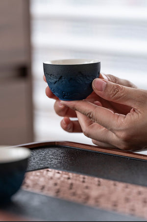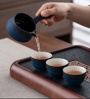 استمتع بجلسة شاي راقية مع هذا الطقم المميز بلونه النيلي الغامق ونقشاته الفنية الأنيقة.