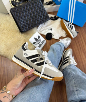 التصميم الأصلي: صُمم في الأصل للرياضيين في سباقات المضمار والميدان وكان جزءًا من تشكيلة أحذية أديداس خفيفة الوزن للغاية. المواد: يتميز بجزء علوي من النايلون المسامي مع طبقات من الجلد السويدي...