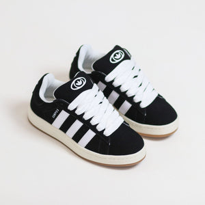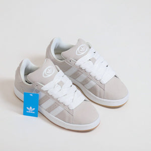 حذاء "Adidas Campus 00s" [1، 3]. يُعرف هذا الحذاء بتصميمه المستوحى من حقبة الألفية الجديدة (Y2K) وأسلوب التزلج على الألواح، مع الاحتفاظ بالأسلوب الكلاسيكي لحذاء Campus الأصلي من الثمانينيات.